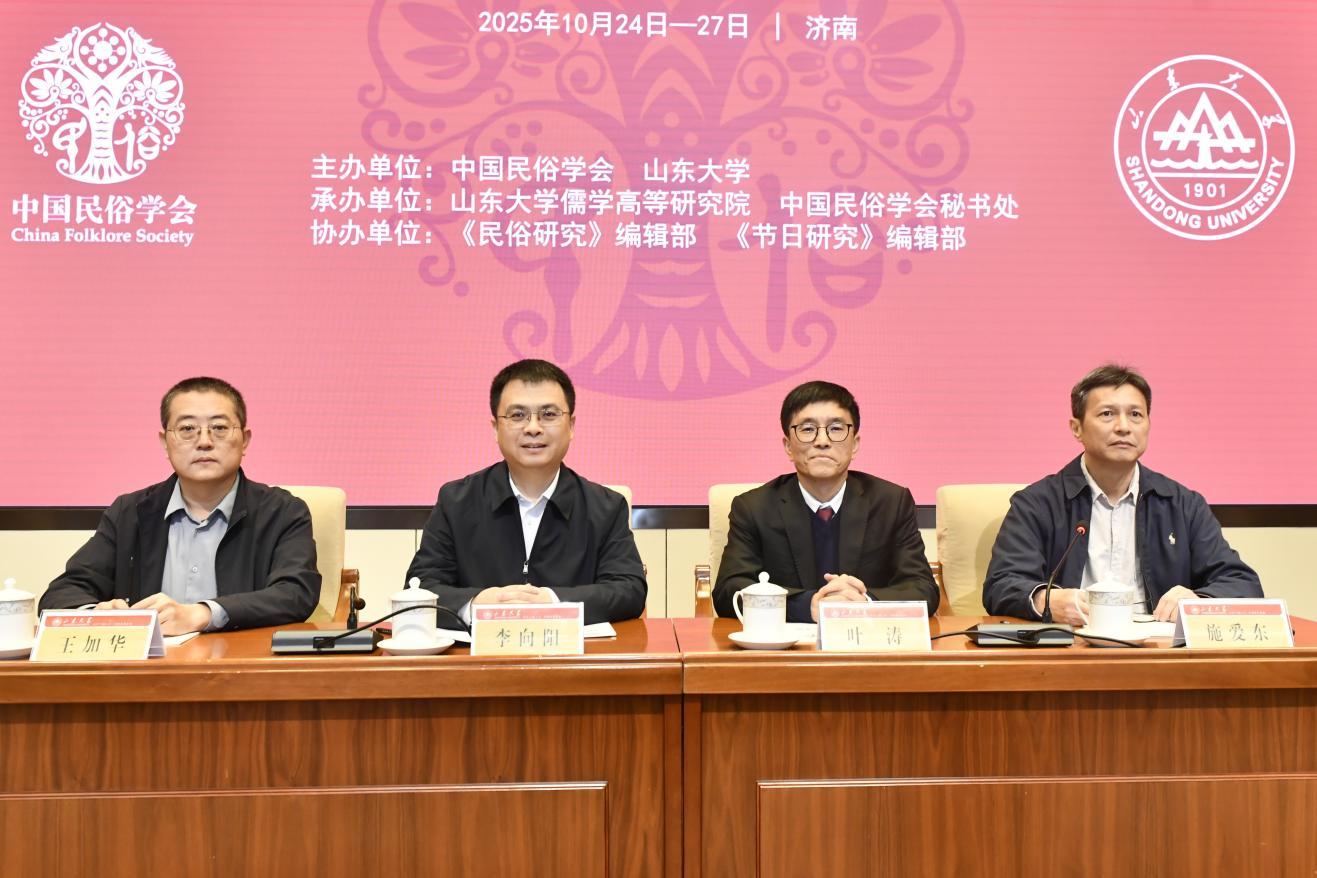 10月24-27日,由中国民俗学会、山东大学联合主办的“中国民俗学会2025年年会”在山东大学中心校区开幕。本次年会的主题是“全球化与本土化对话中的民俗学自主知识体系建设”。山东大学党委副书记李向阳,中国民俗学会会长、山东大学特聘教授叶涛,山东大学儒学高等研究院党委书记、执行院长王加华等出席开幕式。中国民俗学会秘书长、中国社会科学院研究员施爱东主持开幕式。