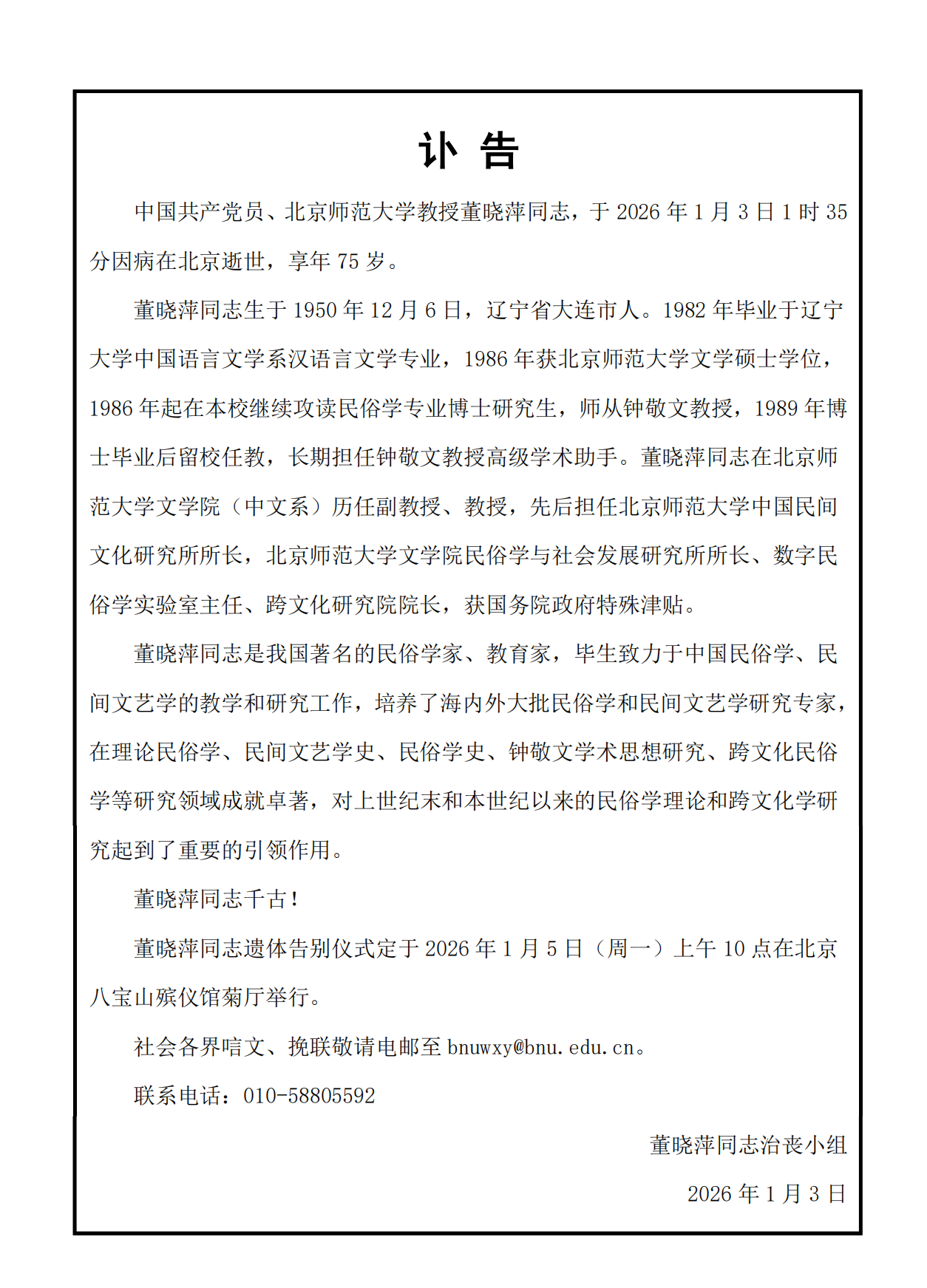 深切缅怀董晓萍教授——中国民俗学会唁函
