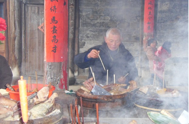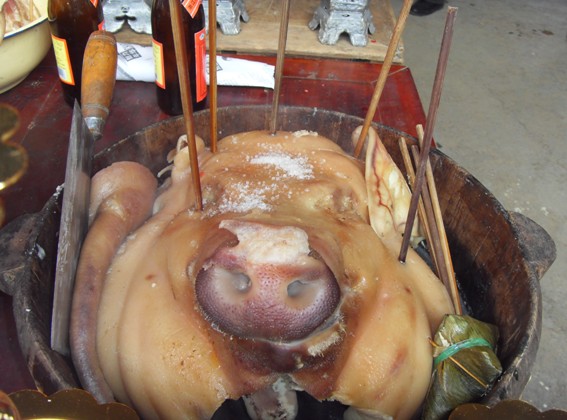 (祭祀猪头 摄影:丘文荣)