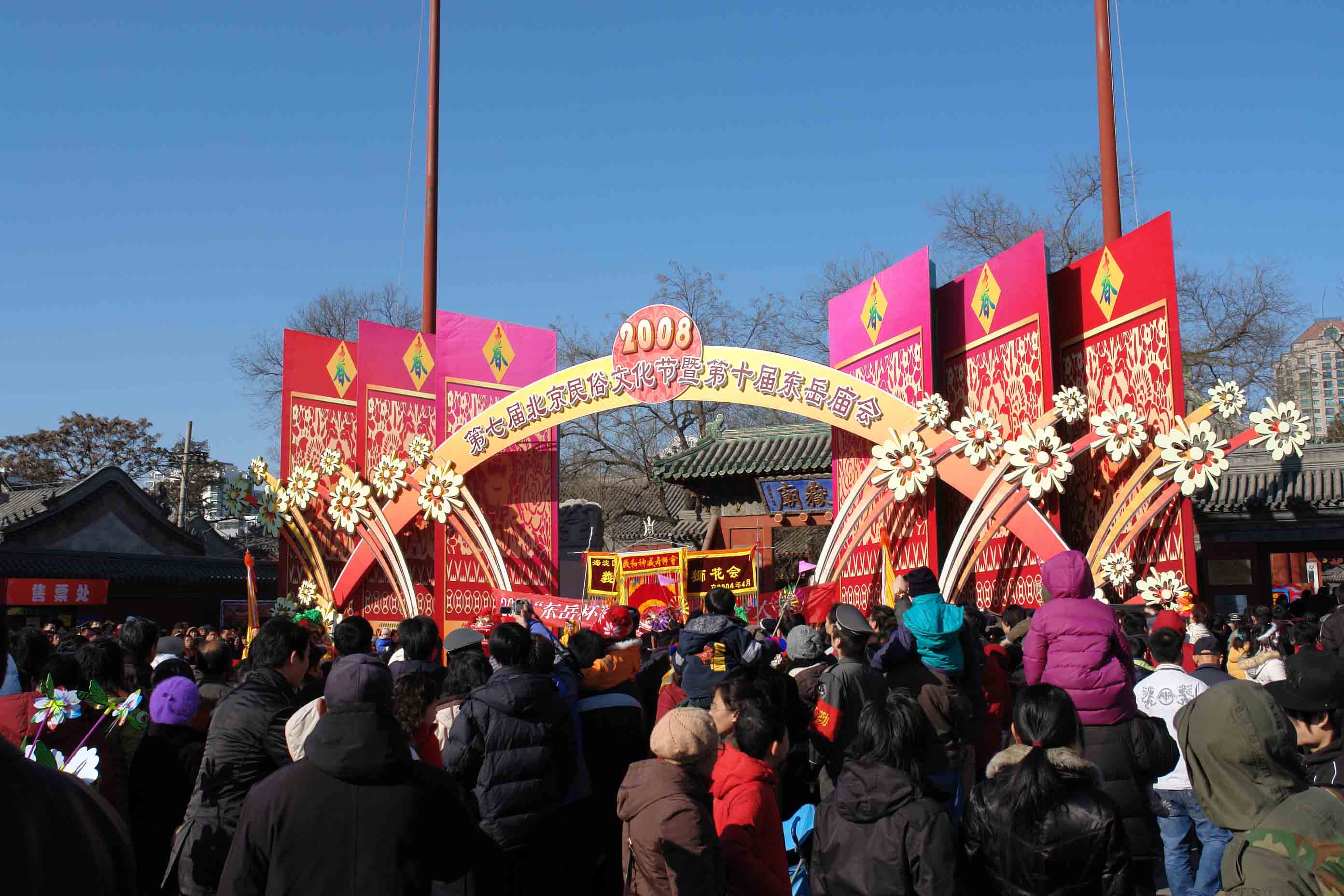 2、近年,北京庙会的兴盛成为不可忽视的京城文化现象。北京的传统庙会,如厂甸庙会、妙峰山庙会、东岳庙庙会等,都得以恢复。新兴庙会中,以地坛庙会为代表,至2010年已经举办25届,规模与经济效益均跃居京城庙会之首。