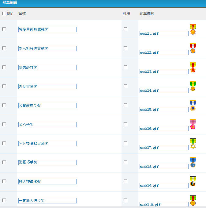 ①智多星终身成就奖 ②刘三姐特殊贡献奖 ③优秀斑竹奖 ④外交大使奖 ⑤公输般原创奖 ⑥金点子奖 ⑦阿凡提幽默大师奖 ⑧贴图巧手奖 ⑨风火神灌水奖 ⑩一休新人进步奖