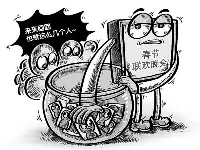 “春晚真是‘王小二过年,一年不如一年’。要不是想陪陪家人,早就出去放烟花了。”可四个半小时看下来,“80后”白领江风觉得,春晚真就像一场烟花——看上去五光十色,让人眼花缭乱,可说结束就结束了,一点痕迹都留不下。
