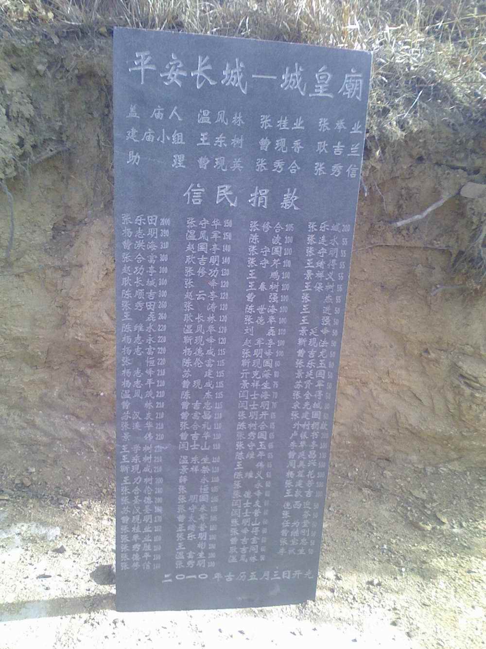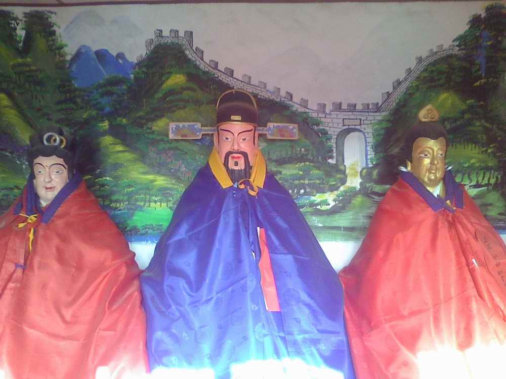 是的。此处原来是孟姜女庙,据这里的老者介绍,规模也比较小。信众以乡村妇女为主。2010年,村里的信众改建成了“平安长城——城皇庙”,里面供奉的是“城皇老爷”(中间)、“泰君奶奶”(城皇老爷的左首)。“城皇老爷”是否“城隍”的讹传?当地人大体肯定。“泰君奶奶”是否泰山娘娘的称呼?当地人基本肯定。但是这些称号似不见于文献记录。庙里的背景壁画,则是蜿蜒的长城。也许可以说,21世纪初期,齐长城下的这一个村落群体里的信仰就是如此。算是实录吧。——此为11月28日拍摄。
