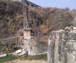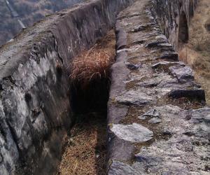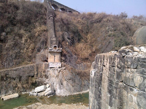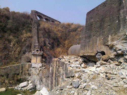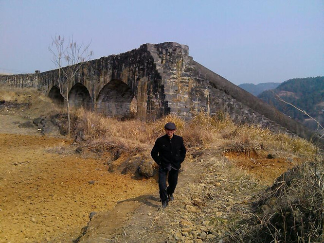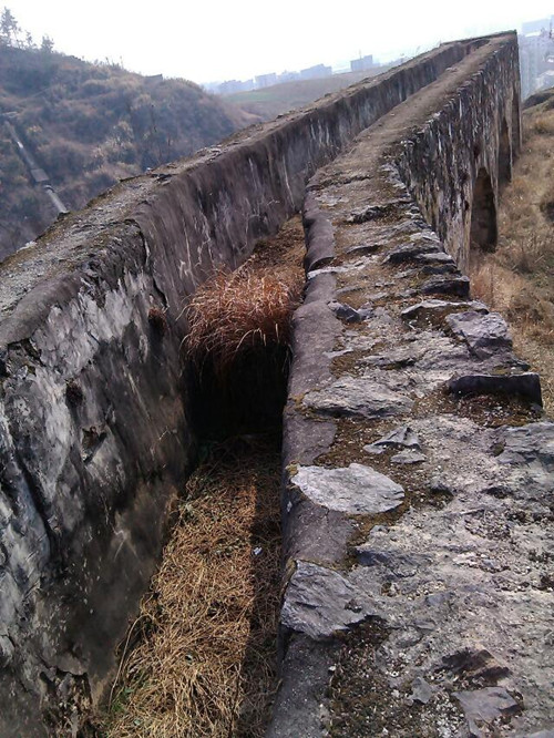 沿小河边西进为洛河旧水道、两峰挟峙如门、旧有一桥、为东干渠引水桥、1971年施工(石刻为证)、引竹溪河水库东下、保证农田灌溉。 桥墩多用墓碑石。 朱志权、原籍兵营、新胜村一组人。据他介绍、名百里长渠、老县委书记王全奎手上建、为1976年。可见民间记亿多讹误、不可不信亦不可深信。2013年冬10月,修洛河公交路扩宽路基及修筑河河水库,此桥拆除。