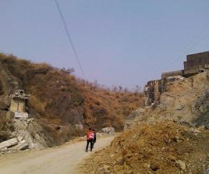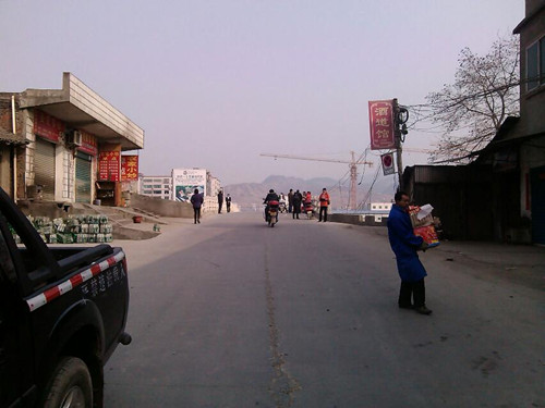 出县城东门、东过跃进桥、北下党校路、 沿河堤走,见老酒场残破不堪。上三堰街、过三堰桥、即洛河大道,南北向,也儿工业园区大道的。桥对岸为洛河旧河道、俗称小河边。 洛河大道与北环路相交、呈十字路口。北环路围绕县城之北,与洛河水平行。河水旧沿山而东行,山边现为 小河边街、 73年学大寨、洛河旧河道在此、有一吊索桥。 小河边村委会略下、小河边学校也在这。百味群(84134126)友、太极拳好手叶林女士住此。