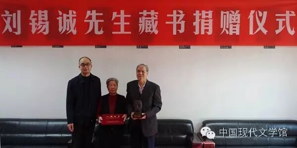 吴义勤书记向刘锡诚夫妇颁发入藏证书和纪念品