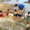 与捡海蛎子的孩子们在海滩上