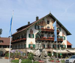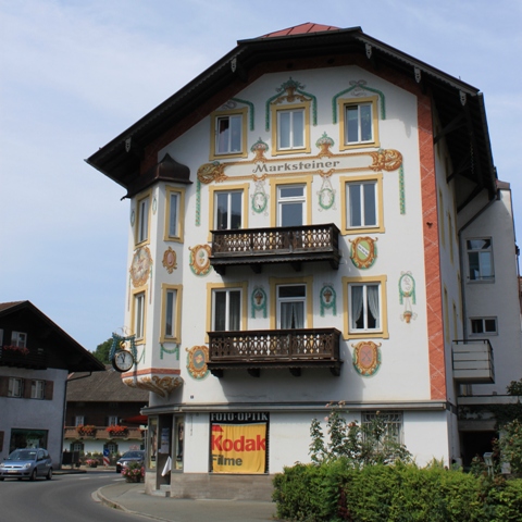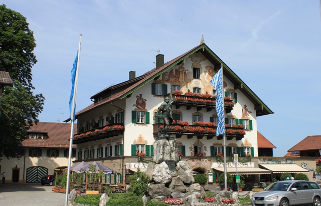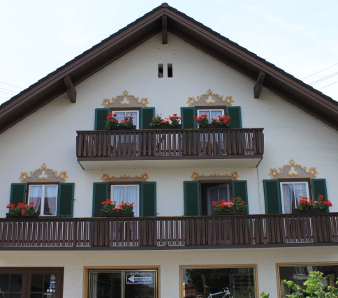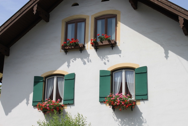 不过,一般的巴伐利亚农庄的房屋都比较破旧,而且因为饲养牲畜,所以四周全都是牛粪马粪的臭气,夏天还有不少的苍蝇飞来飞去。像图片上这些修缮如新的建筑,都坐落在旅游风景区。农庄也大多失去了原有的功能,而改成了乡村旅馆、饭店、商业用房,等等。这种为适应旅游业的需要为特意打制的乡村风格与情调,不知道算不算是“民俗主义”?