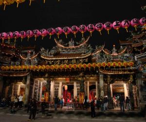 清晨5点半离家,当我们到达位于台中县大甲镇的镇澜宫时,已经是华灯初上,夜色朦胧了。