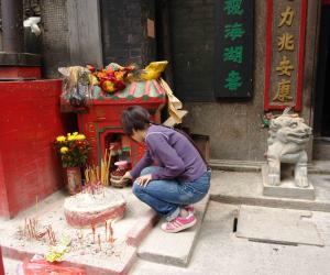 06 庙主梁小姐为我清理小庙前的香烛灰台  [时间:2010-3-22 23:21]