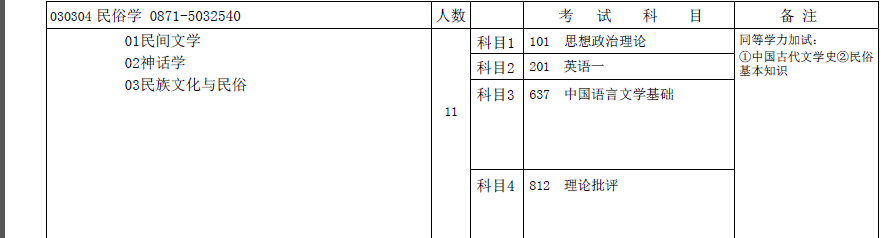 招生简章 030304 民俗学