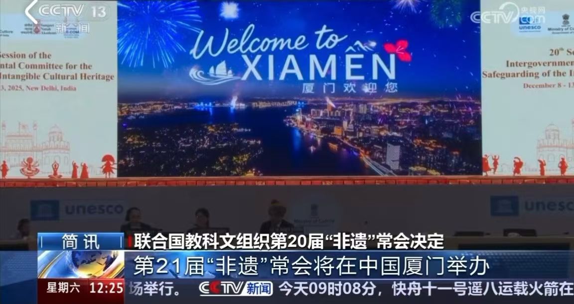 当地时间12月12日,联合国教科文组织保护非物质文化遗产政府间委员会第20届常会决定,将于2026年11月30日至12月5日在中国厦门举办委员会第21届常会。