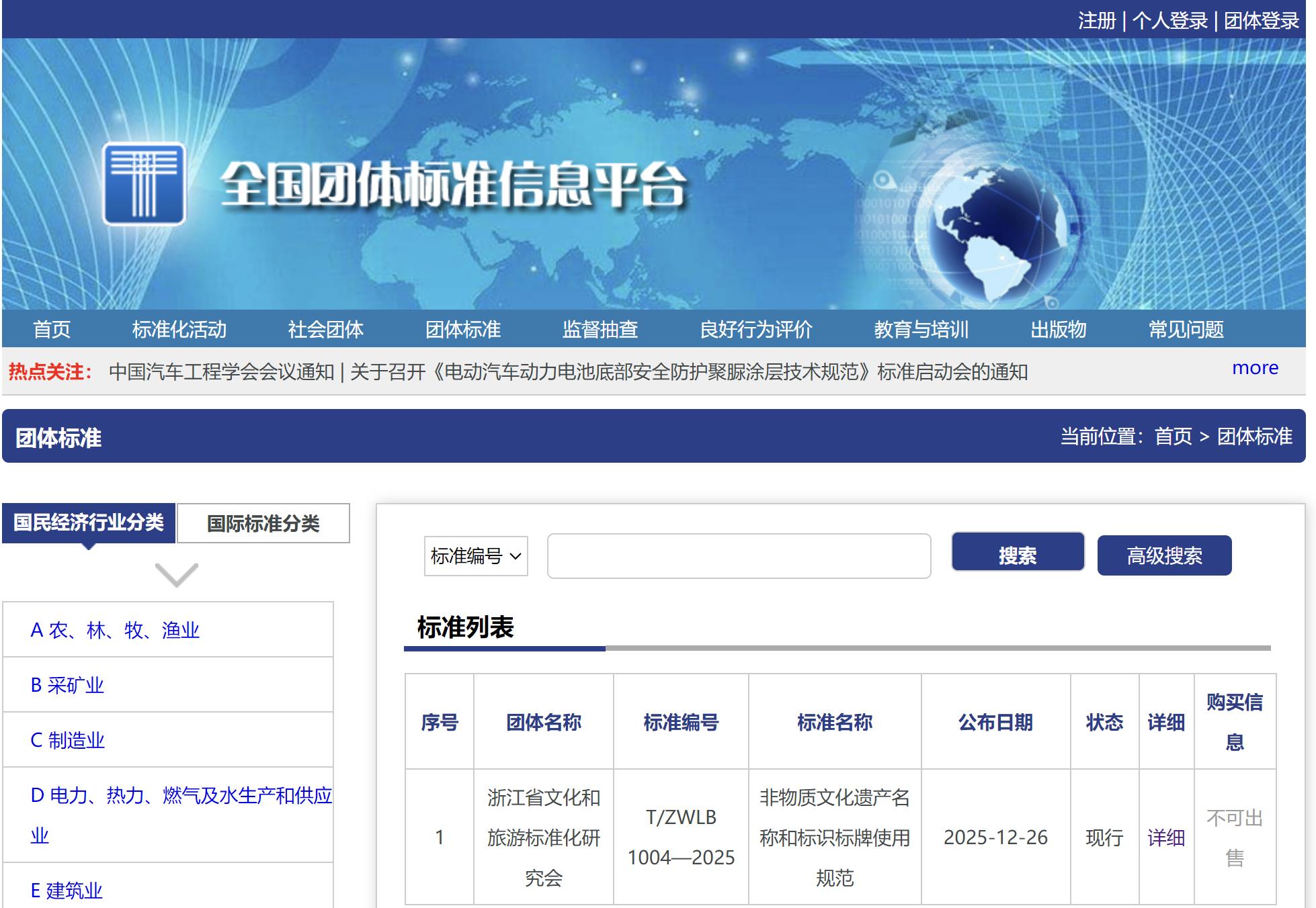 根据《浙江省文化和旅游标准化研究会团体标准管理办法(试行)》的要求,经浙江省文化和旅游标准化研究会秘书处组织审查,批准发布《非物质文化遗产名称和标识标牌使用规范》(T/ZWLB 1004-2025)团体标准,自2025年12月31日起实施。
